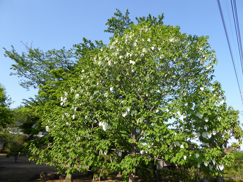 *我孫子市都部(いちぶ)宮本邸庭園のハンカチノキ 国道356成田街道の湖北台団地入口交差点と湖北駅入口交差点の間で成田に向かって |
